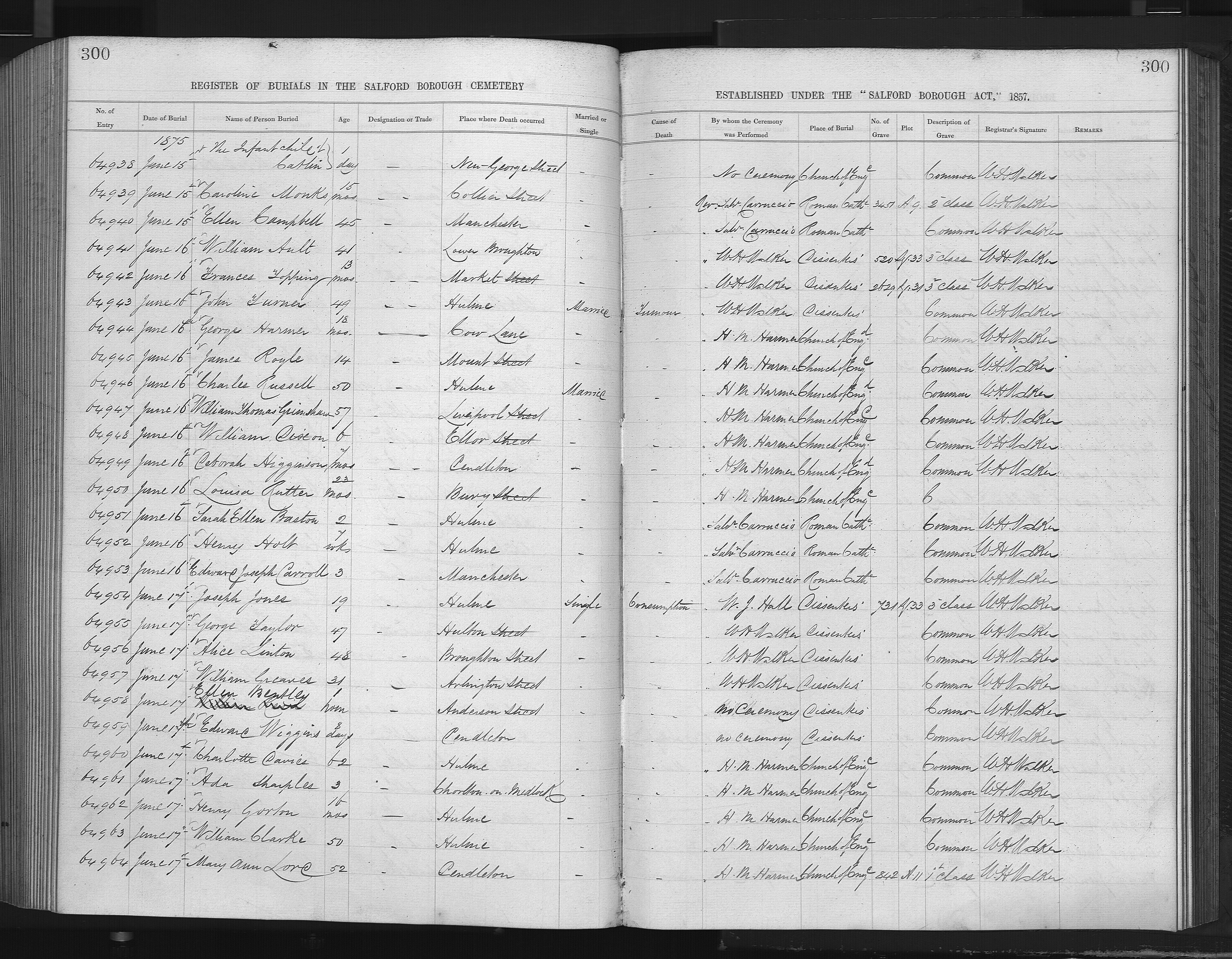 Register of Burials, 16 June 1875, Frances Topping
